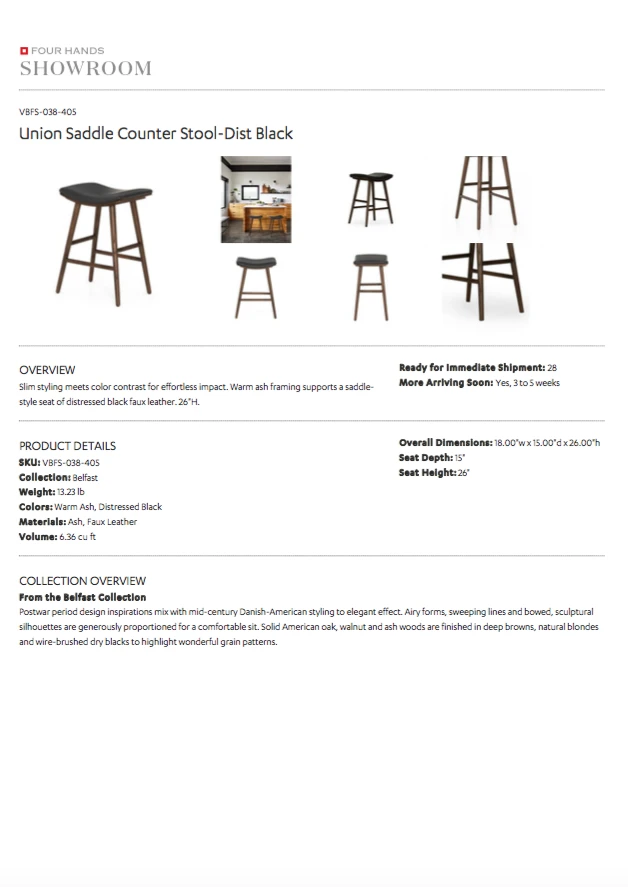Be the first to review “Four Hands New Arrivals Union Counter Stool Distressed Black” Cancel reply