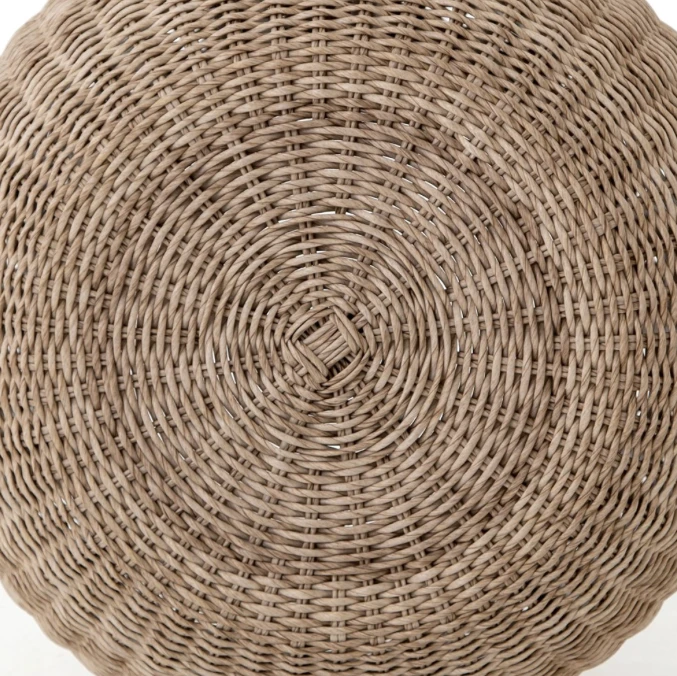The Phoenix Accent Stool from Four Hands is an all-weather wicker weave which is held by an aluminum frame.  The perfectly round shape supports the white vintage finish lending a hand to the overall aesthetic in any space.  Stools such as the Phoenix Accent Stool from Four Hands is ideal in any space of your home and is versatile as it can be used in your outdoor space as well.  *Should be covered or stored indoors during inclement weather.