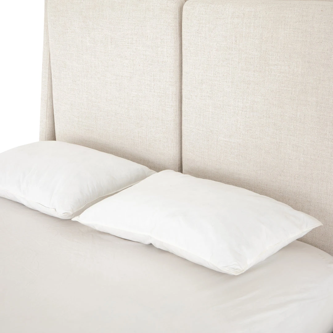 Light, livable luxury. Upholstered in a cream linen-blend, the Potter Bed in Dover Crescent from Four Hands features a tapered headboard with fixed overscale pillows, for a calming look with great depth. Wire-brushed parawood legs lend a warm, natural finishing touch.