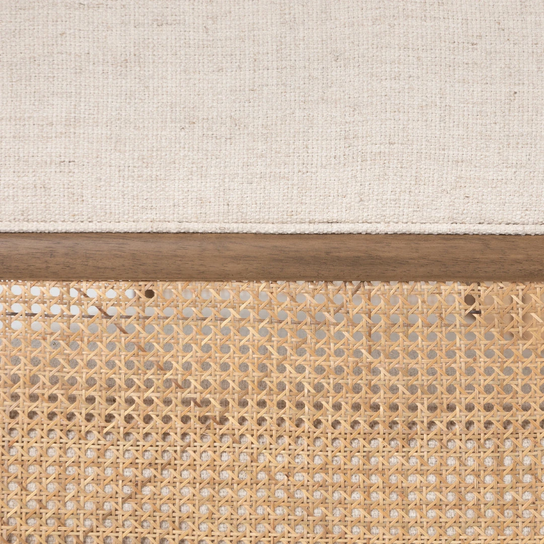 Inspired by beautifully simple Scandinavian styling, the Tremaine Sofa from Four Hands features solid parawood forms in clean, curved lines. Natural cane paneling, with cream-colored seating upholstered in high-performance fabric, is exclusive to Four Hands and offers plush comfort for any room in your home.