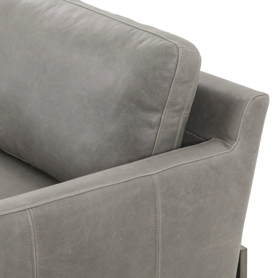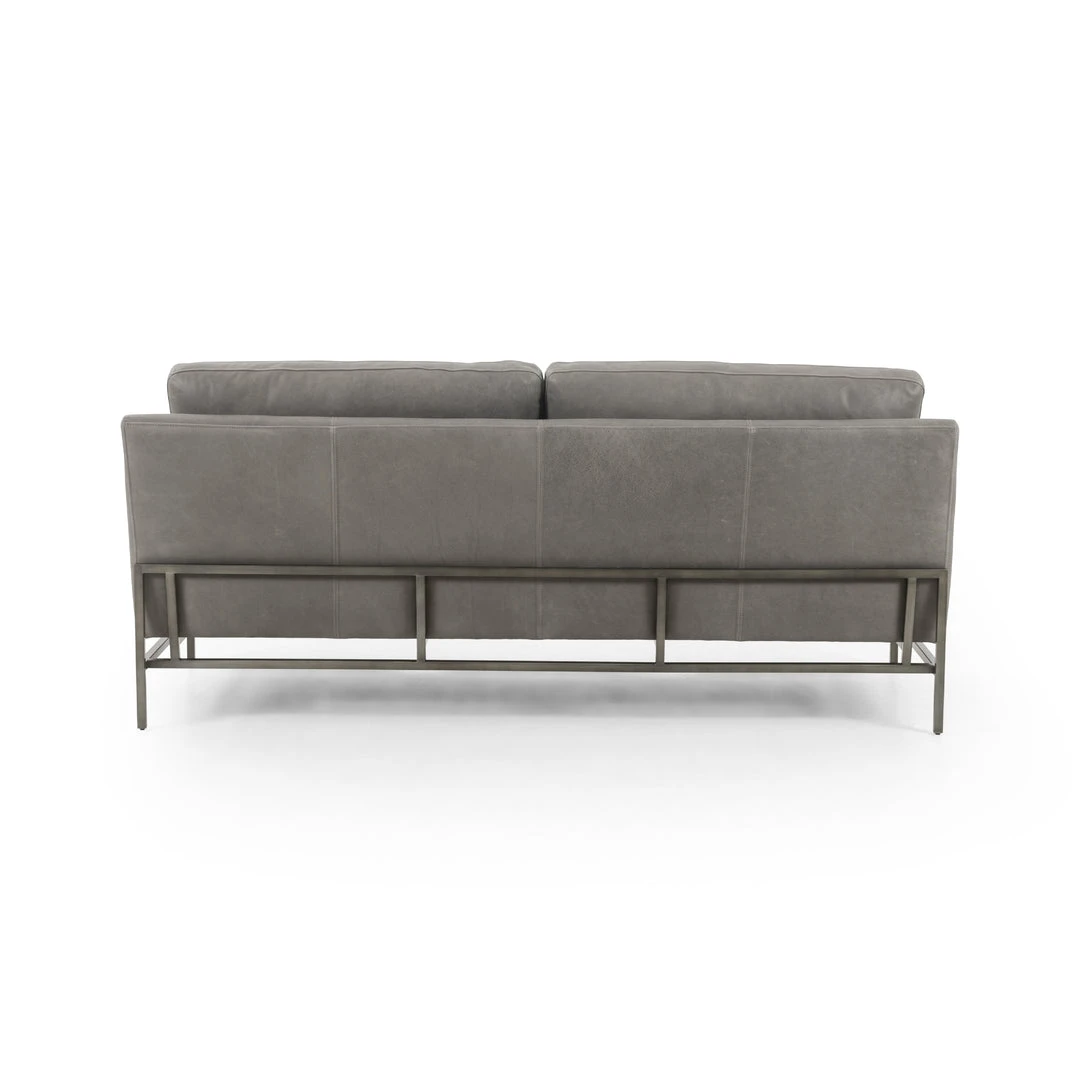 Plush and modern-minded, the Vanna Sofa in Pewter Leather from Four Hands is the perfect addition to your home. Atop an airy, slate-brushed iron base, grey top-grain leather features clean, angular track arms and comfy cushioning, for the best of both worlds. The size and style of this piece fits perfectly into a variety of decor schemes and works well in-home or office.