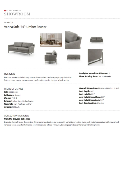 Be the first to review “Four Hands Vanna Sofa Pewter Leather” Cancel reply