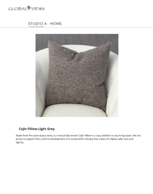 Made from Peruvian alpaca wool, the beautifully woven Cojin Pillow in Light Gray from Global Views is a cozy addition to any living space. Global Views proudly supports Peru and the development of a sustainable industry that treats the Alpaca with care and dignity. Place this striking pillow in pairs in the living room or the master Suite for instant, plush style.