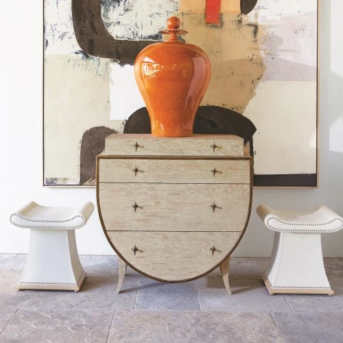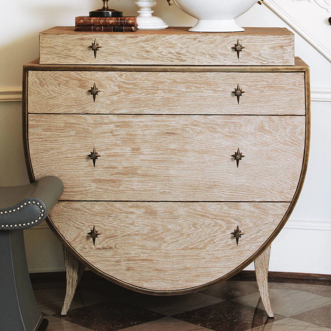 The Global Views Klismos Chest offers functional four drawer storage. The Klismos Chest’s elliptical shape is accented with antique bronze hardware. This vintage inspired chest by Global Views creates timeless decor in a bedroom, office, or entryway.