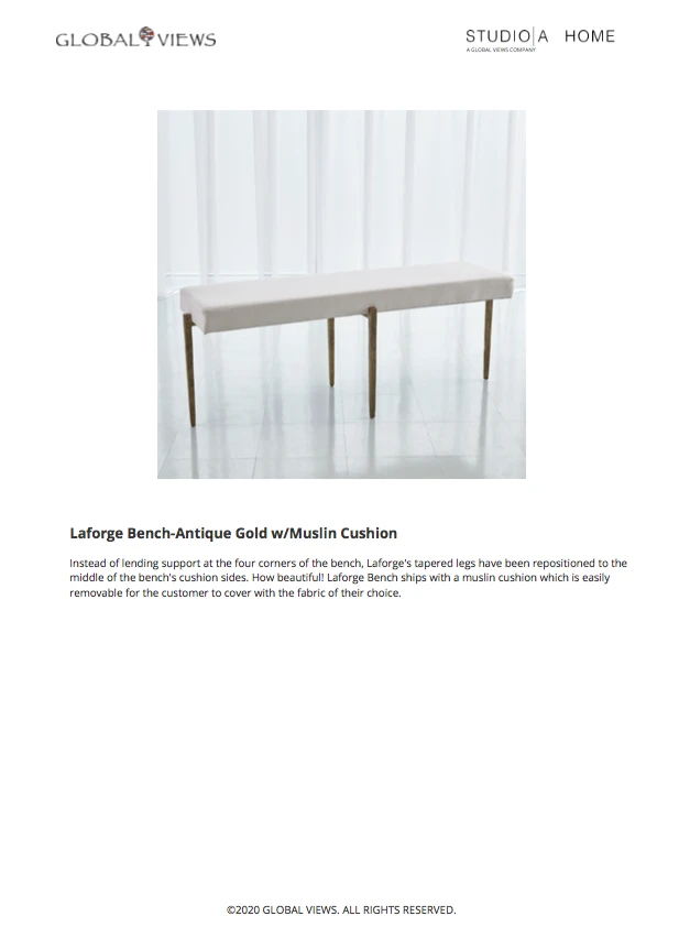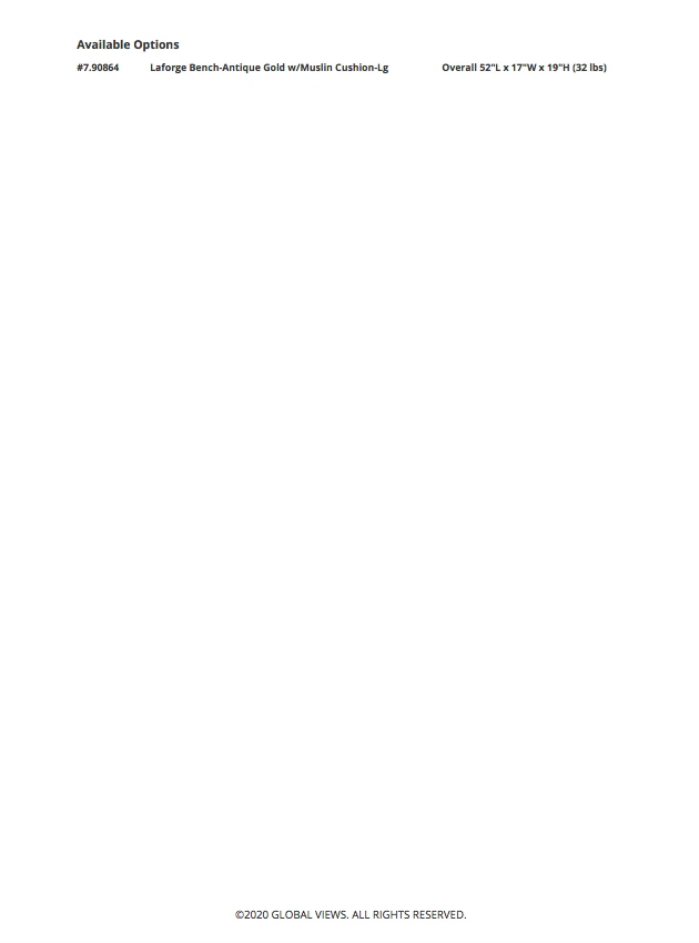 Be the first to review “Global Views New Arrivals Laforge Bench Large Antique Gold” Cancel reply