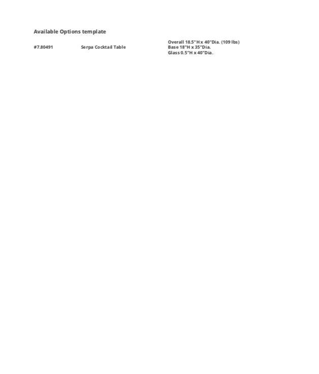 | Dimensions | 18.5" High x 40" Diameter; Base 18"High x 35" Diameter; Glass: 40" Diameter x 0.5" Deep |