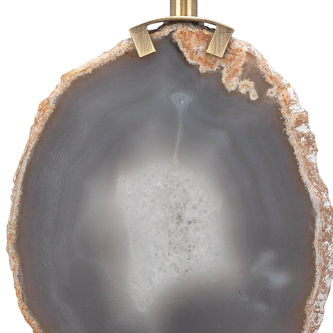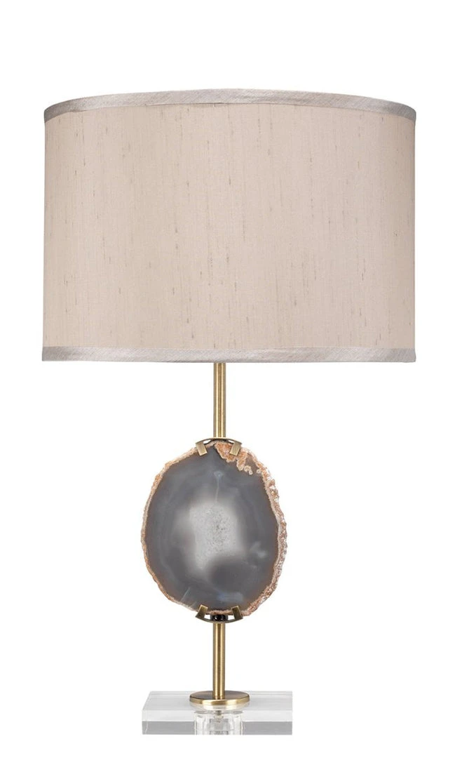 A modern piece with elegant and organic simplicity, the Agate Slice Table Lamp from Jamie Young brings its gorgeous stone base to the front of your attention. This semiprecious stone belongs to the quartz family and is often cited to have properties that diffuse negative energy. Made of natural agate stone, each stone is unique, colors will vary and no two will be identical.