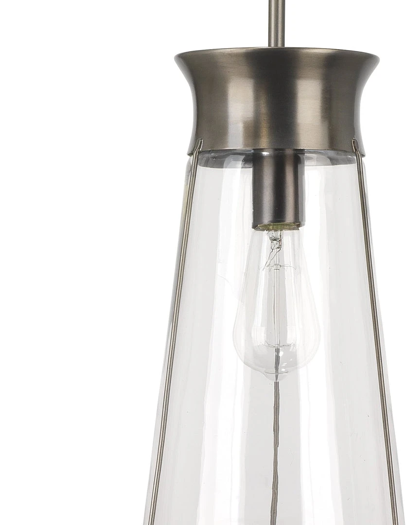 Clear glass, accented with gunmetal makes the Nara Pendant from Jamie Young an easy choice for any environment. Framed in metal, the glass adapts to any paint color or wallpaper. The simplicity of this pendant is accented only by the delicate detail of the chain.