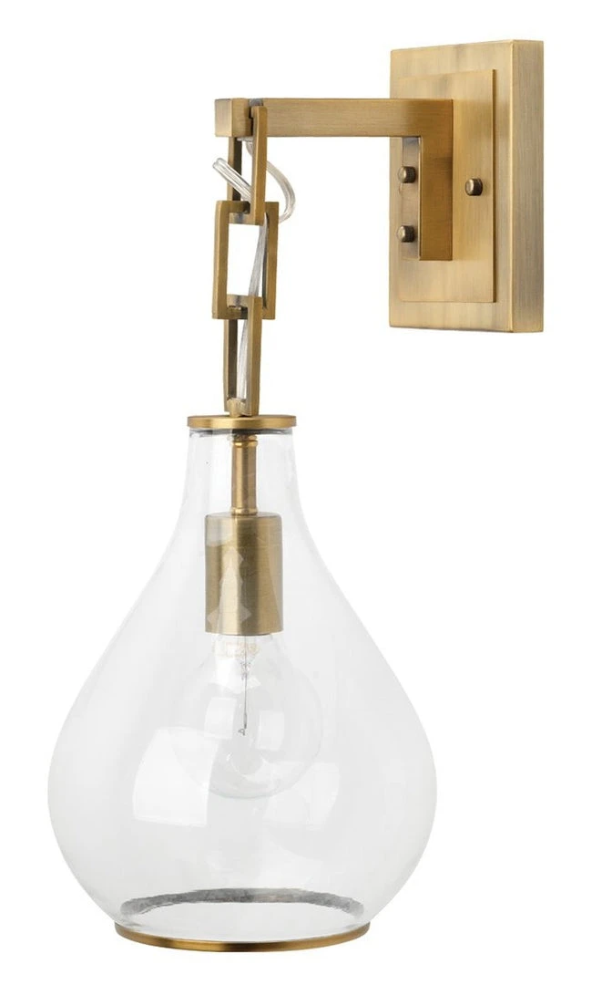 The chain-link detail on the Teardrop Wall Sconce from Jamie Young enhances a classic silhouette, while exquisite clear glass and antique brass finishings capture refined elegance and polish. This contemporary wall sconce is perfect for entryways, hallways, powder rooms or dining spaces.
