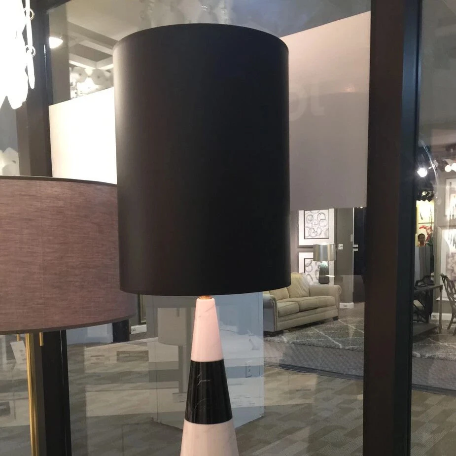 Designed by Jonathan Adler, the Canaan Tapered Lamp with Black Shade offers a contemporary Carrara and black marble base. A black linen shade sits atop this sleek tapered cone of marble delivering a vibe of chic sophistication to your home. The Canaan is ideal placed in pairs in the foyer, office or bedroom.