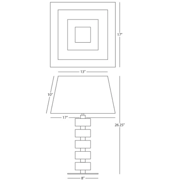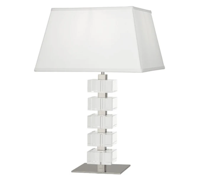 The Monaco Table Lamp from Jonathan Adler features five clear crystal blocks that sit a top of a polished nickel base.  The white silk shade offers a clean feel to this lamp design.  Table Lamps such as the Monaco Table Lamp from Robert Abbey are ideal in the living room, dining room, or paired on either side of the bed.