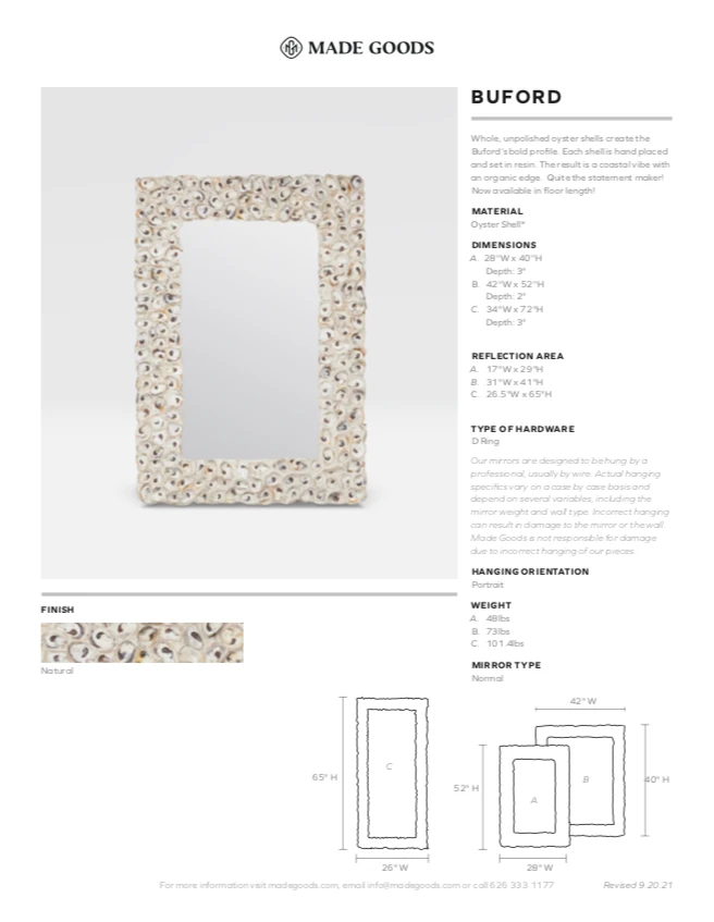 SKU: made-goods-6807991156784 Categories: Brands, Dining Room, Floor Mirrors, Kitchen & Dining, Made Goods, Mirrors, Mirrors, Mirrors & Art, New, New Arrivals Tags: 90days, Buford, Coastal mirror, Jan2022, Made goods, Made goods floor mirror, Made goods mirror, Oyster shell mirrir