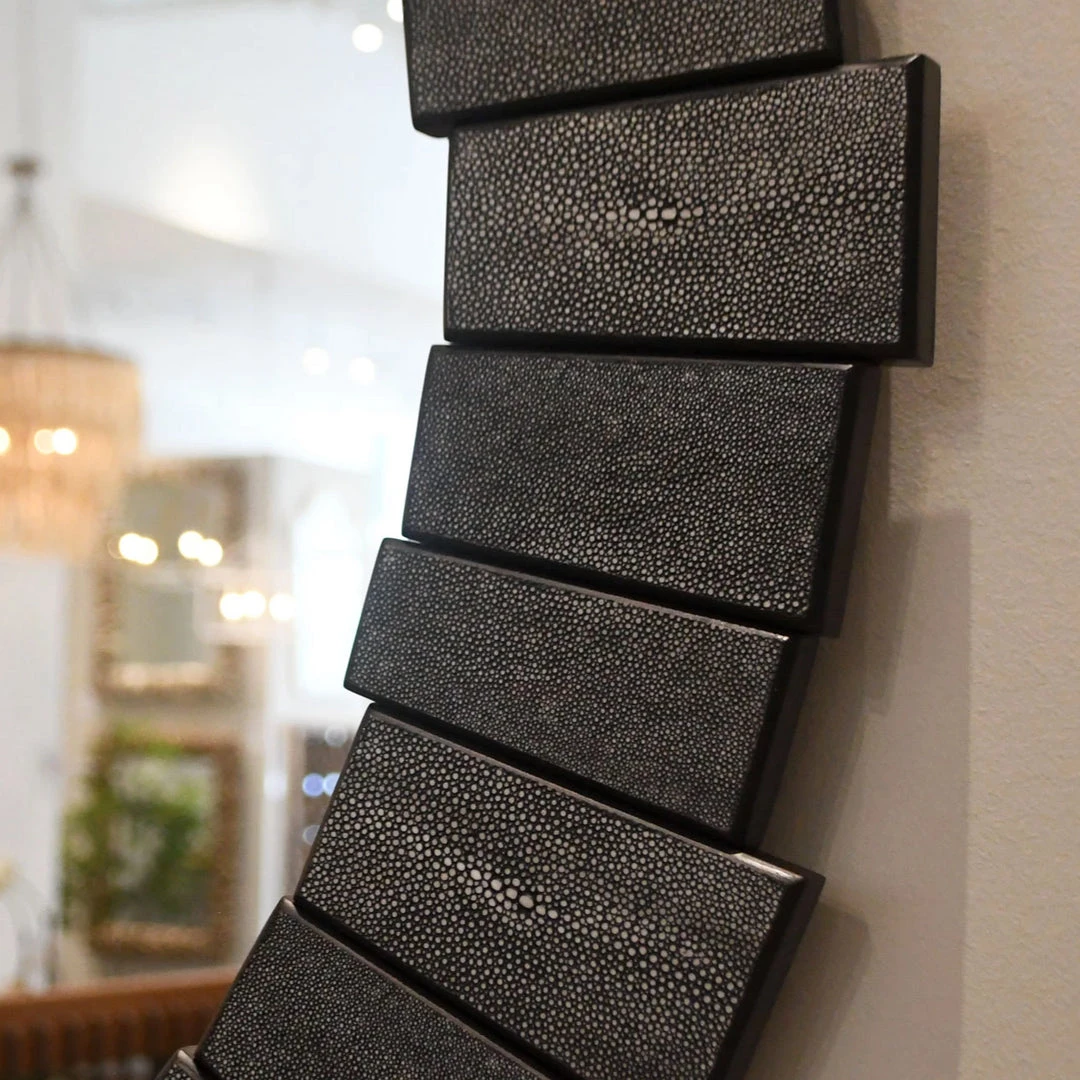 Made Goods presents the handsome, round Claude Mirror in Cool Gray featuring a modern geometric design. The frame of this unique wall mirror is finished in faux shagreen which reflects a stunning grain pattern that will make a statement in your home from the entry to your master suite. Decorative mirrors like the Claude add a sophisticated vibe to your home or business and can be used as bedroom mirrors, vanity mirrors or bar mirrors. *Choose from two sizes available.