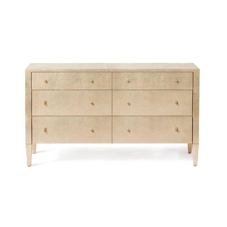 | Materials | Champagne Faux Raffia Finish; 6 Drawers; Drawer Pulls |