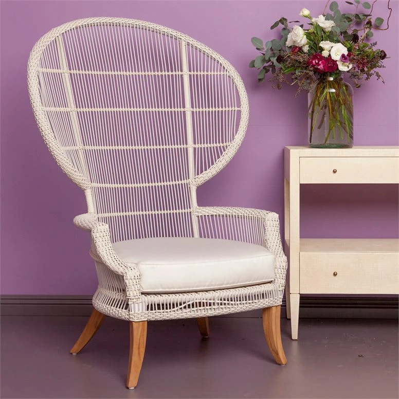 | Materials | Wood; Faux Raffia; 2 Self-Closing Drawers; Brass Knobs |