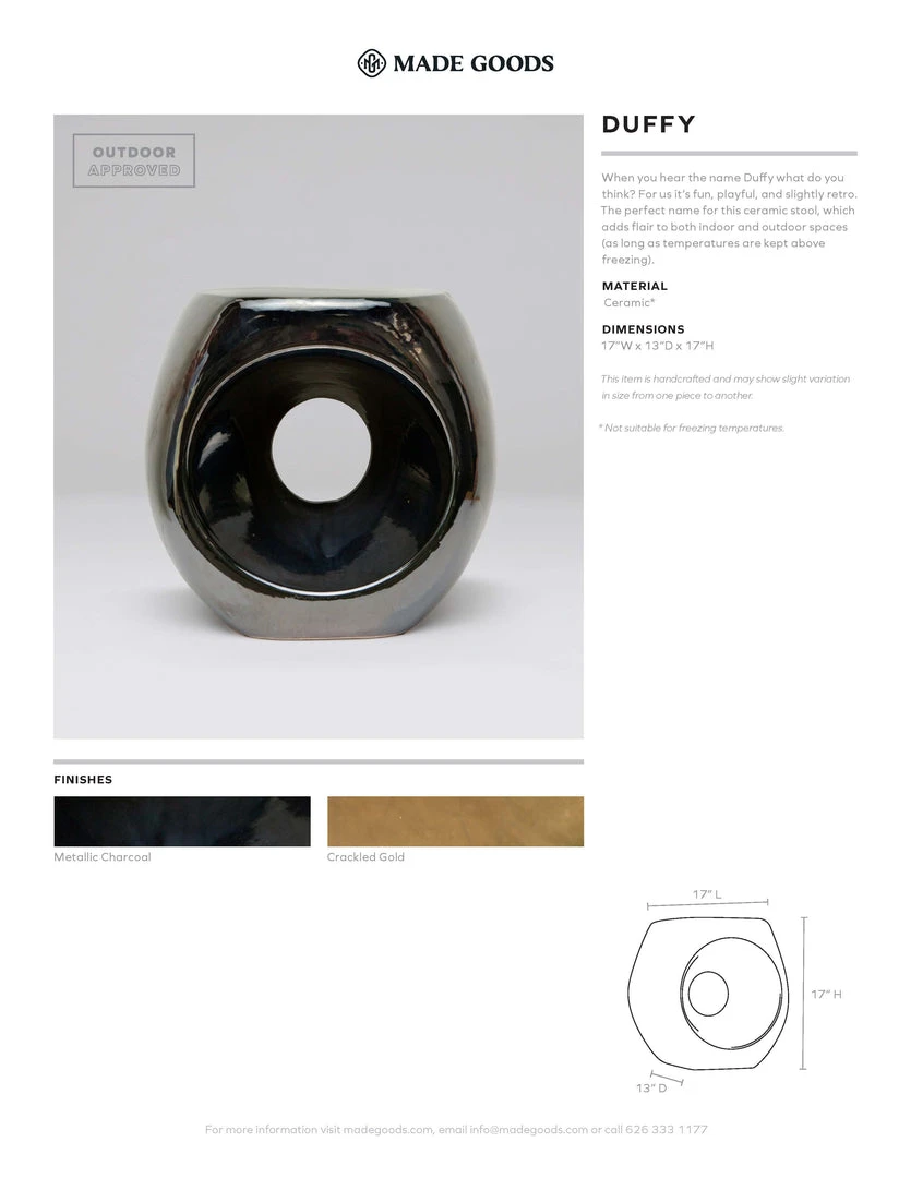 SKU: made-goods-7491046469 Categories: Brands, Furniture, Made Goods, Made Goods, New, New Arrivals, Outdoor, Seating, Stools Tags: Ceramic stool, Crackled gold, Duffy stool, Gold seating, Indoor, Made goods furniture, Round, Seating
