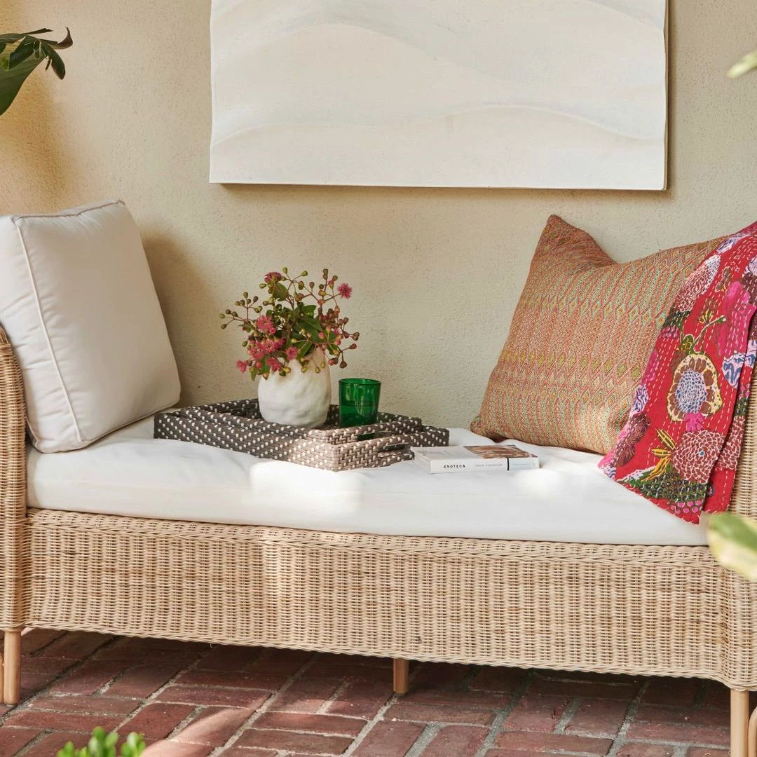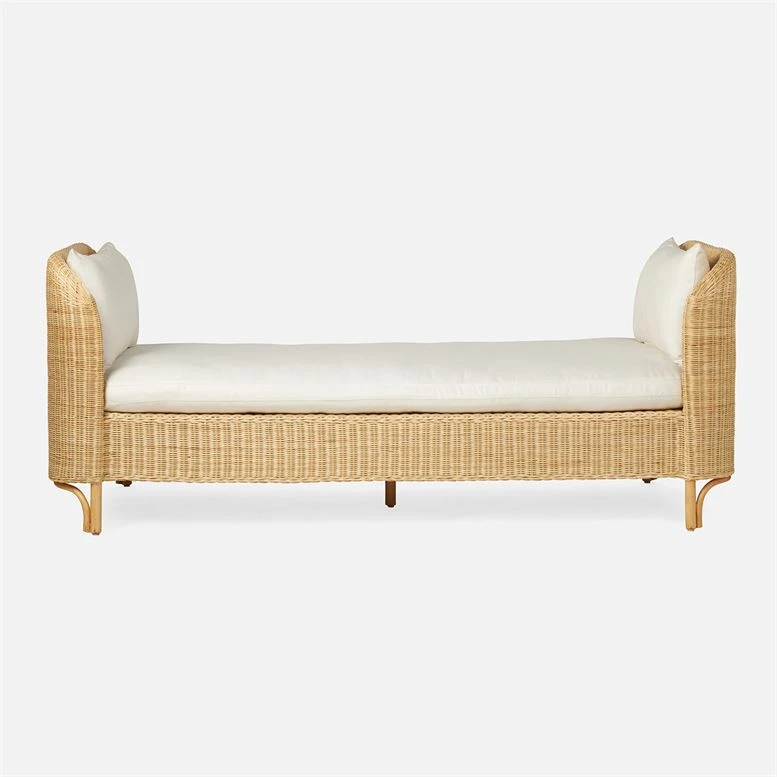 With its end-to-end pillows, tightly woven faux wicker, and modern update on the Roman frame, the Dunley Daybed in Light Natural Wicker from Made Goods is sure to be a fast favorite for lounging. Pair with the Dunley Lounge Chair for chic comfort.