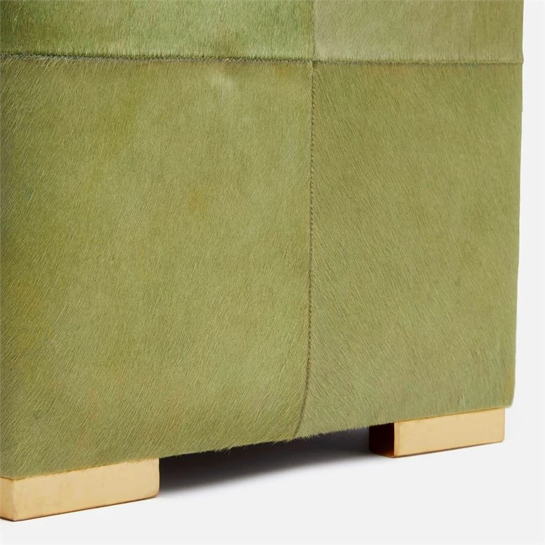 A statement piece, the square Essex Stool in Moss Hair on Hide from Made Goods showcases dramatic rustic style. Fully covered in hair on hide, the classic seating offers functionality and bold exotic style. Stools like the Essex add an eclectic and glamorous ambiance to any room of the home or office. *This item is handcrafted and may show a slight variation in size and material from one piece to another.