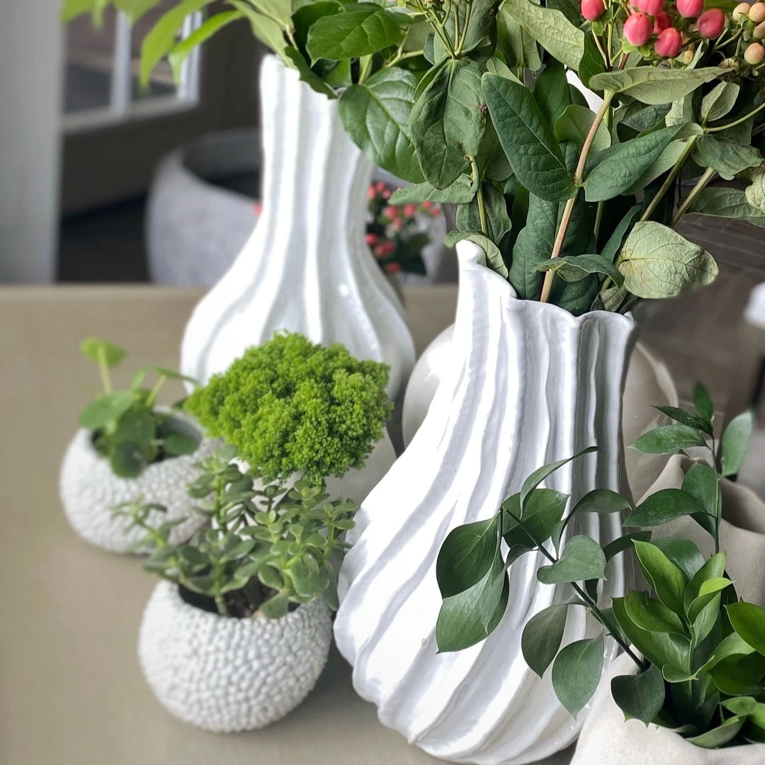 The Feri Vase Set of Two from Made Goods is crafted from delicate coral-inspired stoneware and can be used as a vase or a bowl. Capture a fresh, coastal vibe for your dining table with this contemporary neutral vase filled with lush flowers or foliage. *Sold in a set of two.