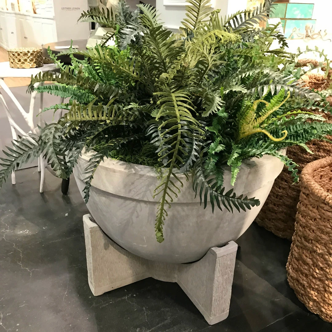 The Flavia planter by Made Goods is the perfect outdoor piece in our favorite shade of light gray. The sturdy concrete construction makes it ideal for the front porch or patio placement. Fill with your favorite greenery and enjoy the textural design of the wide-lipped bowl nestled in the three-pronged stand. The concrete design is naturally distressed and will vary from piece to piece with minor cracks and imperfections. Outdoor furniture.
