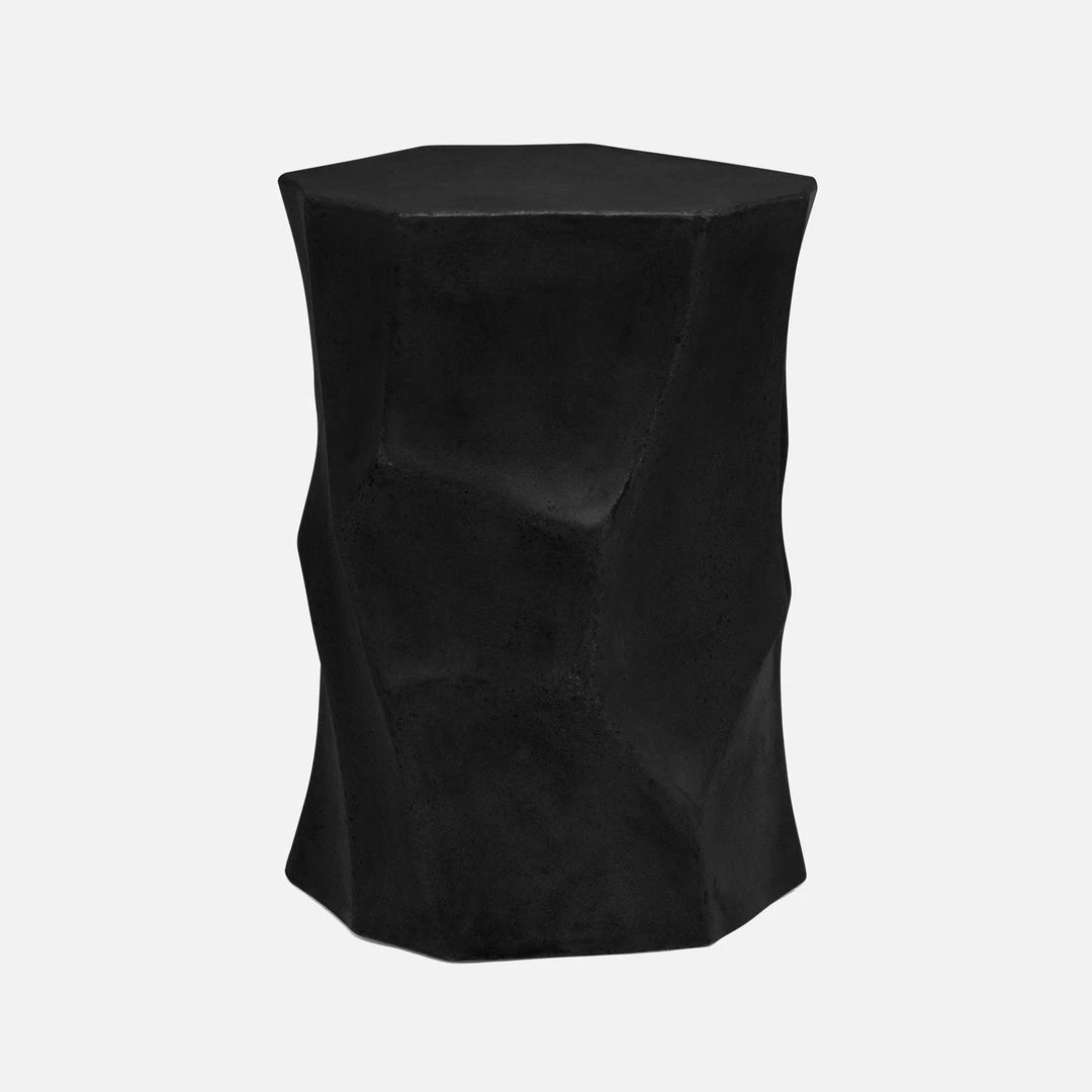 The Galten Stool in Black from Made Goods features an abstract and faceted design in black reinforced concrete. Placed indoors or out, the Galten gives any outdoor seating area a bit of an edge. Providing style and versatility, use the Galten for a footrest, extra seat, or a plant stand.