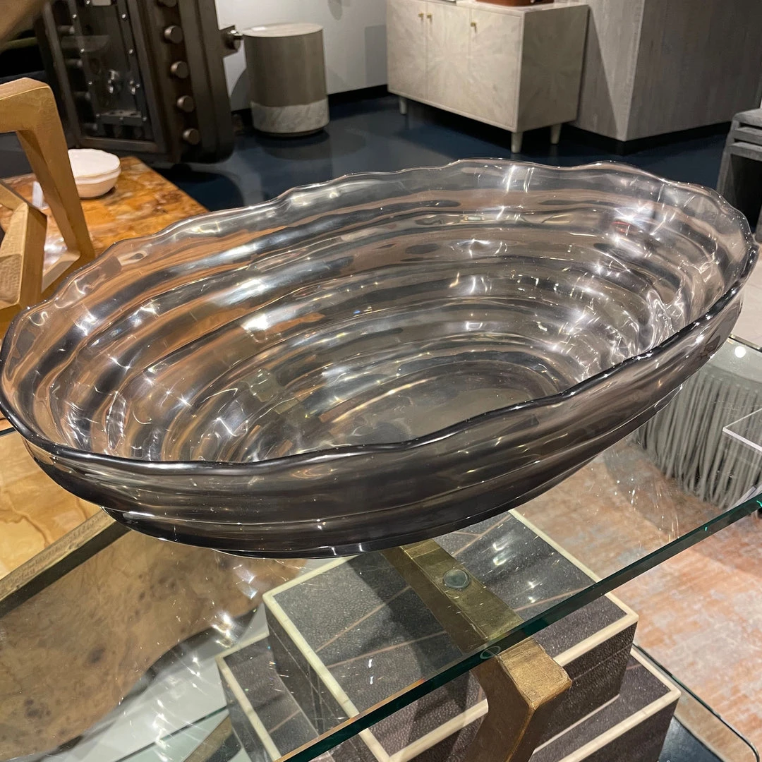The large, round-shaped Hetty Bowl in Smoke e from Made Goods delivers decorative functionality. Imagine this lovely translucent resin container, filled with lemons and limes, on your kitchen island or filled with your favorite flowers on your cocktail table.Â