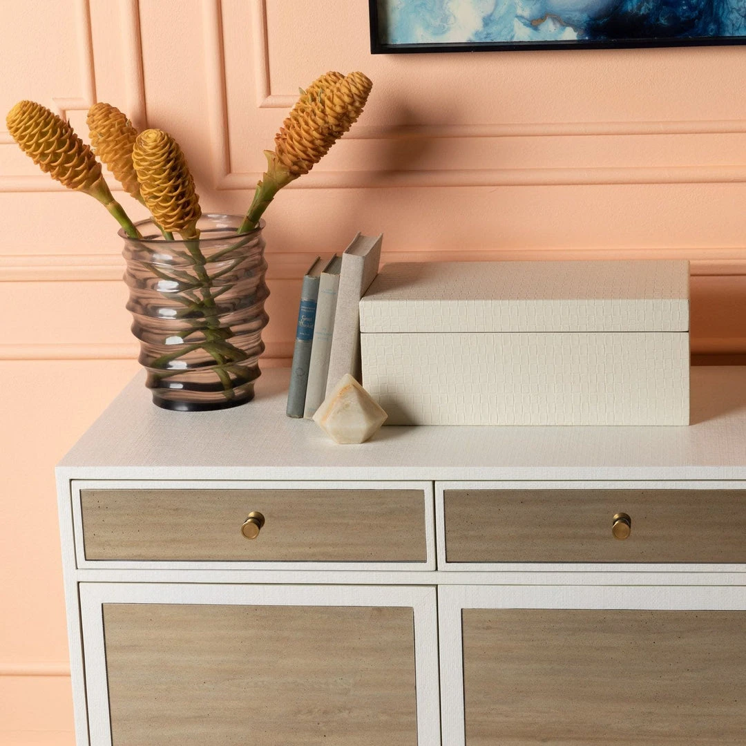 This semitransparent Hetty Vase in Smoke from Made Goods has ridges that beautifully filter light through it. The Hetty’s subtle yet unique color is designed to complement well-designed palettes. Perfect given as a gift or to add beauty and style to your own space