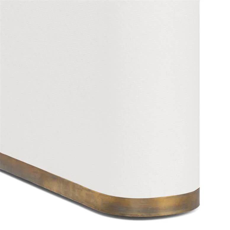 The contoured shape and faux rattan texture of the Hudson Console in Pristine Faux Woven Rattan from Made Goods projects a sense of easygoing elegance. Fully finished on all sides with brass band detail, place the Hudson in entryways, living spaces or dining rooms for effortless contemporary style and superior functionality.