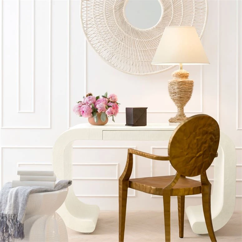 The Ida Lamp in Natural Fibers from Made Goods takes a classic silhouette, which gives it a casually contemporary update. While urn-shaped lamps are often seen in ceramic or metal, this unique piece is covered in woven natural fiber and set atop a chunky round crystal base.
