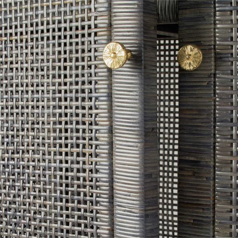 A tightly wrapped, peeled rattan frame complements the dense basket weave of the Isla Cabinet in Smoke Peeled Rattan from Made Goods. Featuring three fixed wood shelves, with tightly wrapped smoke peeled rattan edges that mirror the cabinet’s exterior structure, complete its well-tailored design.