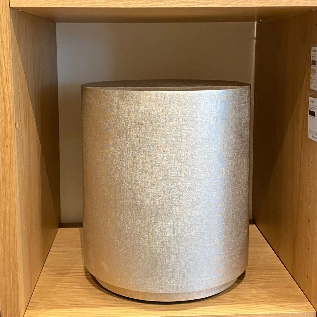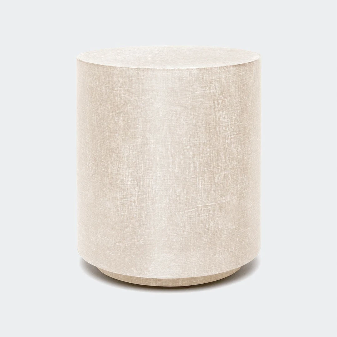 This fun accent is covered in faux waxed linen adding a textural element to its clean silhouette. The Leonia Stool in Warm Silver Faux Linen from Made Goods can be used as a stool or group several together to form a fun, unique coffee table.