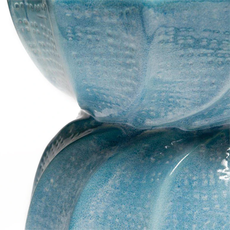The modern, round Bea Stool in Soft Blue from Made Goods is crafted from ceramic into a unique faceted design. This indoor or outdoor extra seating can also be used as a small side table as needed. Use a pair of these next to your coffee table to create a more intimate seating arrangement for small groups. Consider using this sophisticated piece on your deck or lanai as seating, a small side table for drinks or as a display stand for plants or decorative garden accents. *This item is handcrafted and may show slight variation in size from one piece to another. Not suitable for freezing temperatures. The manufacturer recommends the use of felt pads on the bottom to minimize surface scratching. Outdoor Furniture