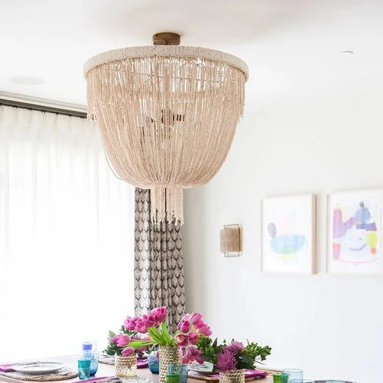 Made Goods Carmen Chandelier in Natural Coco Beads was designed and crafted using nature-inspired materials. Bringing contemporary design to your home, large chandeliers like the Carmen reflect a casual yet glamorous vibe. This versatile modern chandelier lighting can be used as foyer chandeliers, dining room chandeliers or bedrooms chandeliers. Make a stylish statement when you illuminate your home with the Carmen. *As seen in Atlanta Homes magazine.