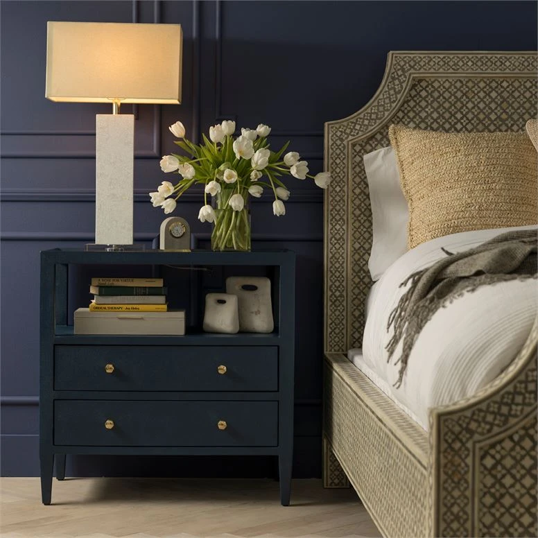 Delicate material meets ancient techniques with the Della Lamp in White Lacquered Eggshell from Made Goods. The exquisite look of the Della features cracked eggshell creating an intricate one-of-a-kind pattern painted and encased in resin. This column-shaped lamp is quite the conversation starter. Place the Della on entryway consoles, on either side of the sofa or at the bedside for chic style.