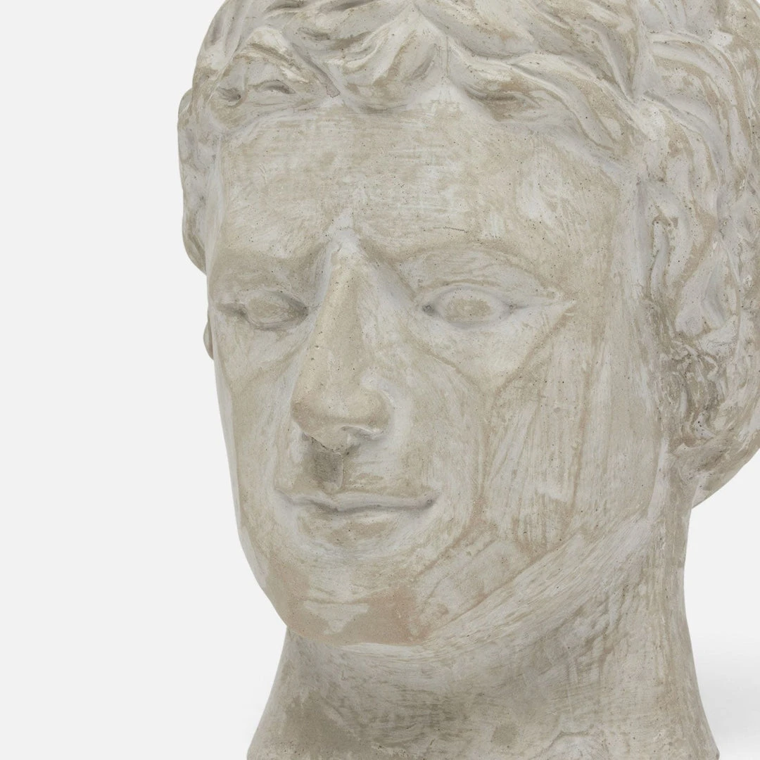 Made Goods showcases the decorative Giuseppe Bust in Light Gray. The angular features on this bust make it an accouterment for a new age of classicism. Place the Giuseppe on a buffet, mantle, pedestal, dining table or niche to add a touch of grandeur to any space. *Concrete material naturally distresses. Minor cracks and imperfections are to be expected.