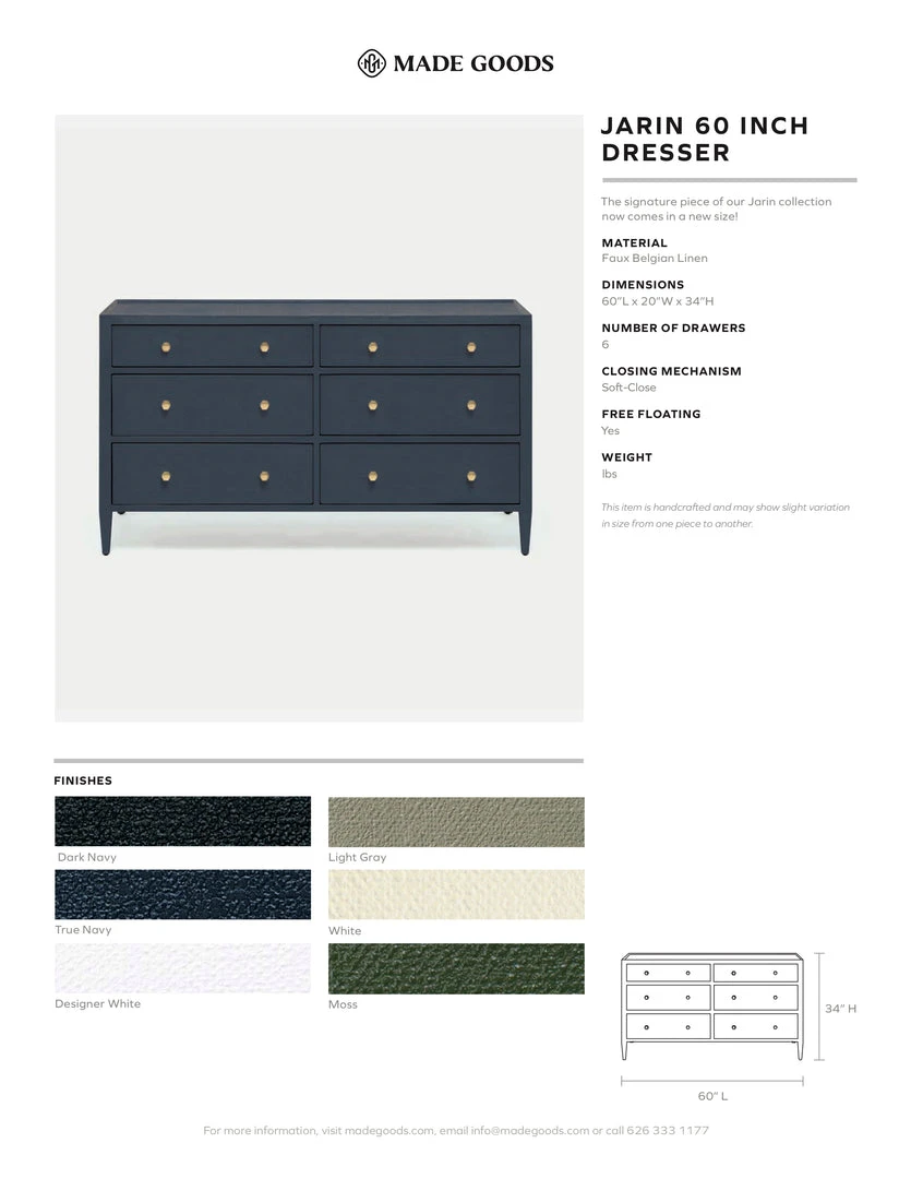 Be the first to review “Made Goods New Arrivals Jarin 60″ Dresser White Faux Belgian Linen” Cancel reply
