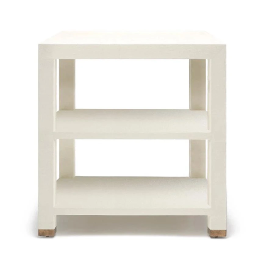 The Jarin Side Table from Made Goods comes in a faux white Belgian linen finish.  The linen compliments the brass detailing at the base of the table.  Side Tables such as the Jarin Side Table from Made Goods is ideal in the living room, master suite or office.