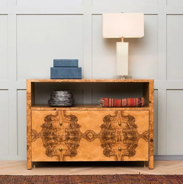 The Lindsey Buffet from Made Goods features vibrant patterns that play nicely on the simplistic silhouette which features an open shelf and two bottom drawers. Buffets such as the Lindsey will make a strong sophisticated design statement in any decor scheme.