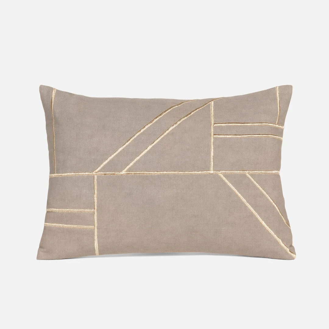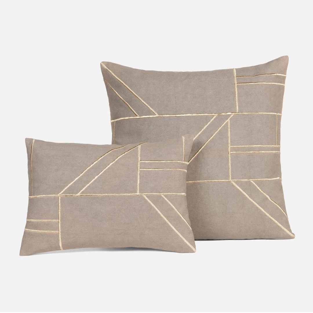 The Roslyn Lumbar Pillow in Gray Set of Two from Made Goods features a primitive, geometric design with a touch of metallic flair. Bring a touch of whimsical, visual interest to any chair, sofa, or bed with this versatile pillow. Available in a set of two, the Roslyn works well anywhere in your home. Mix this luxurious pillow with other prints and fabric textures to create interest in your decor scheme. Sold as a set of 2 only.