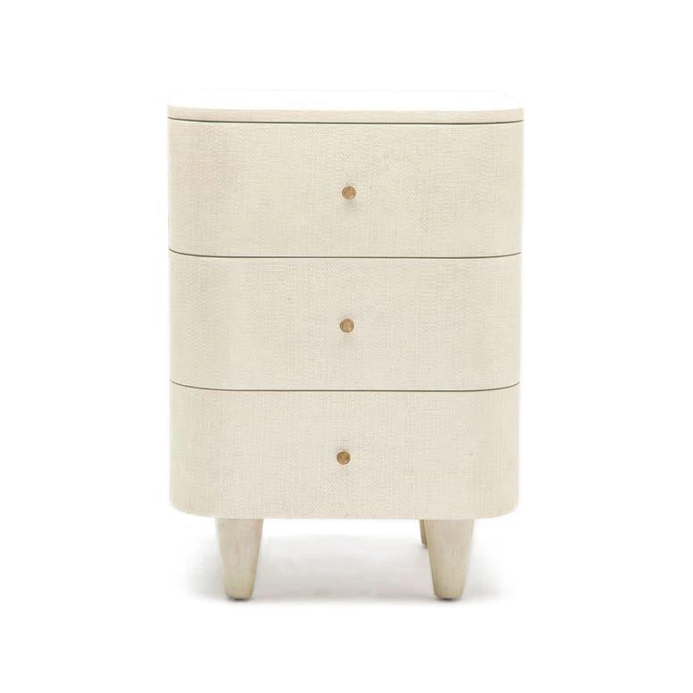 | Materials | Off White Faux Raffia; Brass Hardware; Three Drawers |