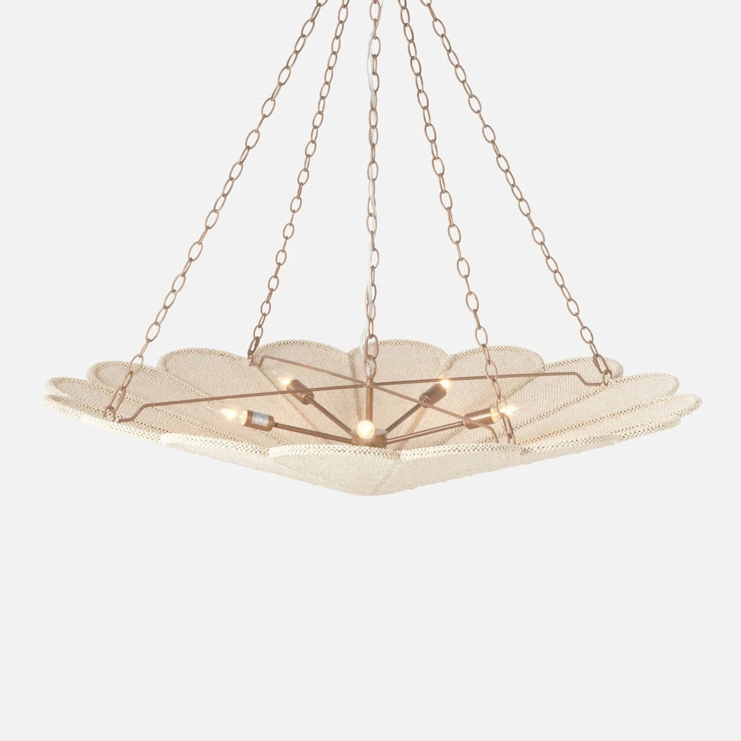 Made Goods presents the Sofia Chandelier in Large offering a breezy sophisticated palm-inspired chandelier with a fresh vibe. Hand-strung woven coco beads create an organic, refined pattern for light to filter through. Available in two sizes, the Sofia is perfect for bedrooms and living spaces alike.