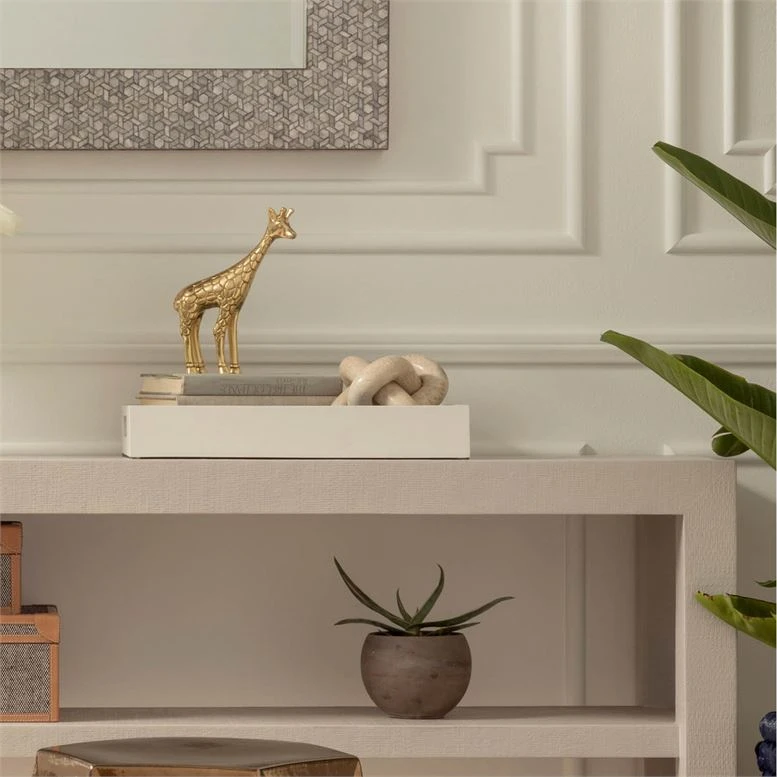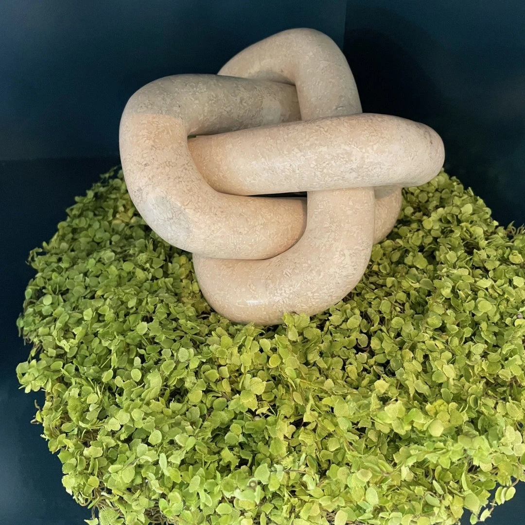 Inspired by Celtic knots, the Tallis in Cream Stone from Made Goods features a three-link sculpture, adding symbolism and style to a bookshelf, coffee table, mantle, or more. Each piece is handmade, never mass-produced, and built to withstand varied elements and temperatures.