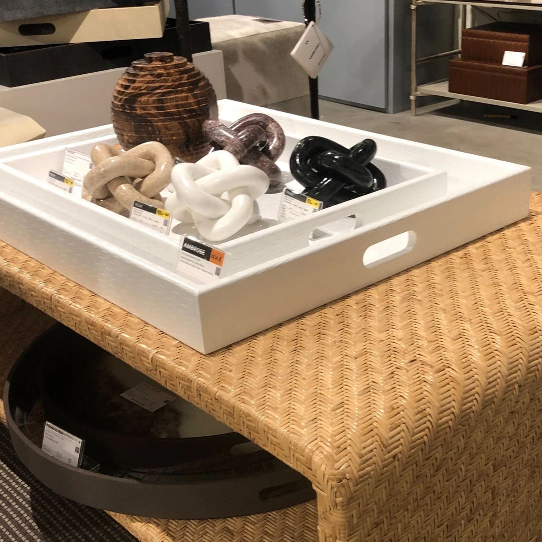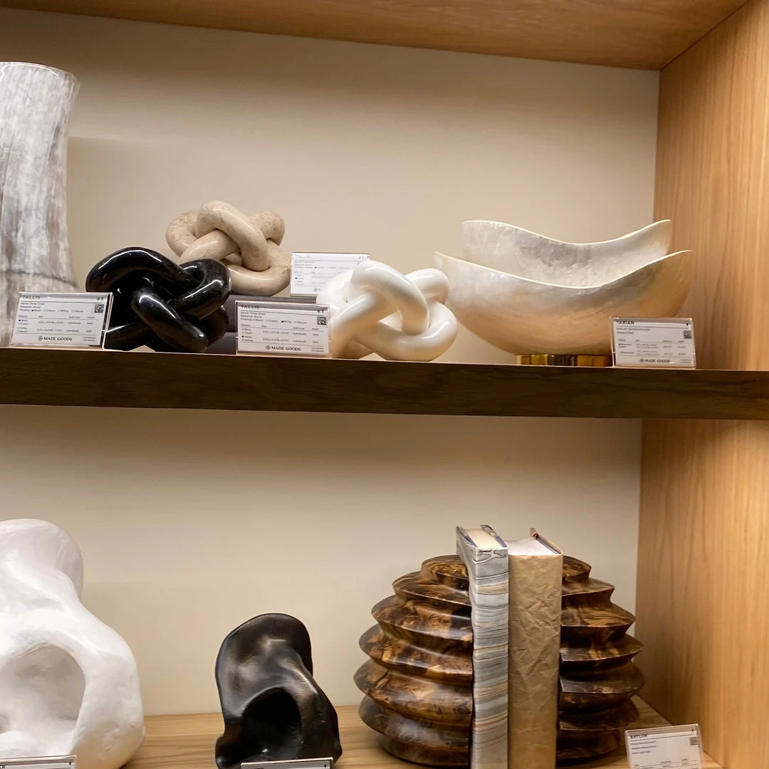 Inspired by Celtic knots, the Tallis in White Stone from Made Goods features a three-link sculpture, adding symbolism and style to a bookshelf, coffee table, mantle, or more. Each piece is handmade, never mass-produced, and built to withstand varied elements and temperatures.