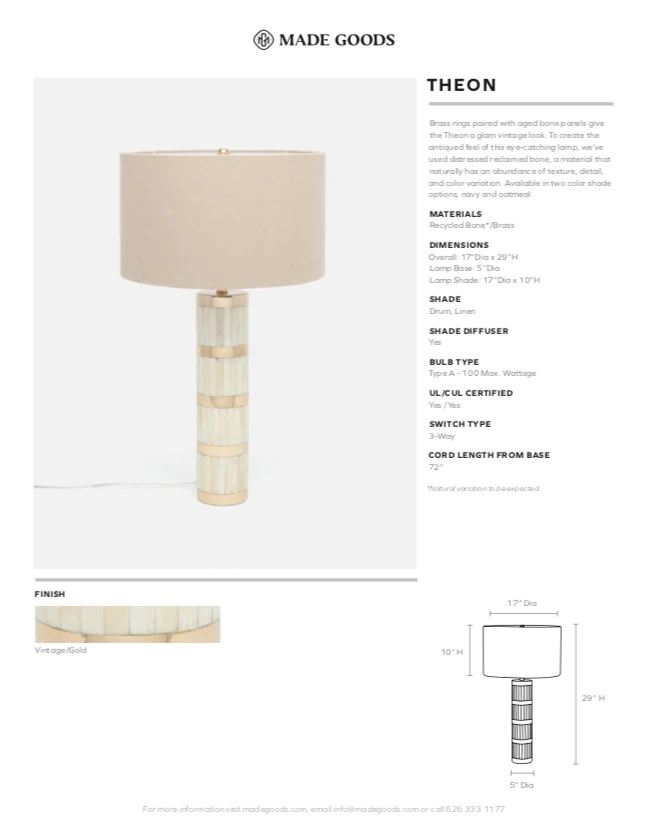 SKU: made-goods-6808107057200 Categories: Bedroom, Brands, Lighting, Made Goods, Made Goods, New, New Arrivals, Table Lamps, Table Lamps Tags: Bone, Bone table lamp, Brass table lamp, Instock, Lighting, Made goods lighting, Made goods table lamp, Theon