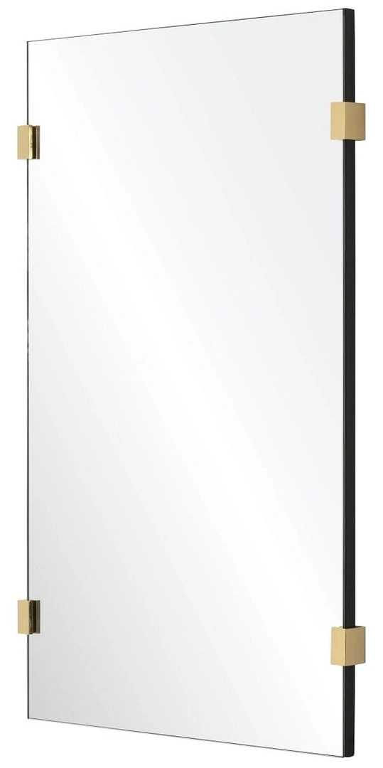 The Mirror Home Rectangle Framed Mirror with Brass Detail showcases a beautiful wall accent for your home. Shaped as a rectangle, this versatile accessory reflects remarkable simplicity, making it a great choice for foyers, living rooms, and master suites. The burnished brass clips on the side of the mirror act as jewelry for the modern piece.