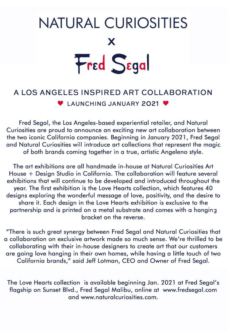 The Natural Curiosities presents Big Sur Love 15 wall art. Continuing the love of love, this new collection features a collaboration with the iconic Californian company, Fred Segal. Big Sure takes a classic Natural Curiosities Collection, Cartier Hearts, and gives it a fresh new color update. Share the love with black and white hearts!