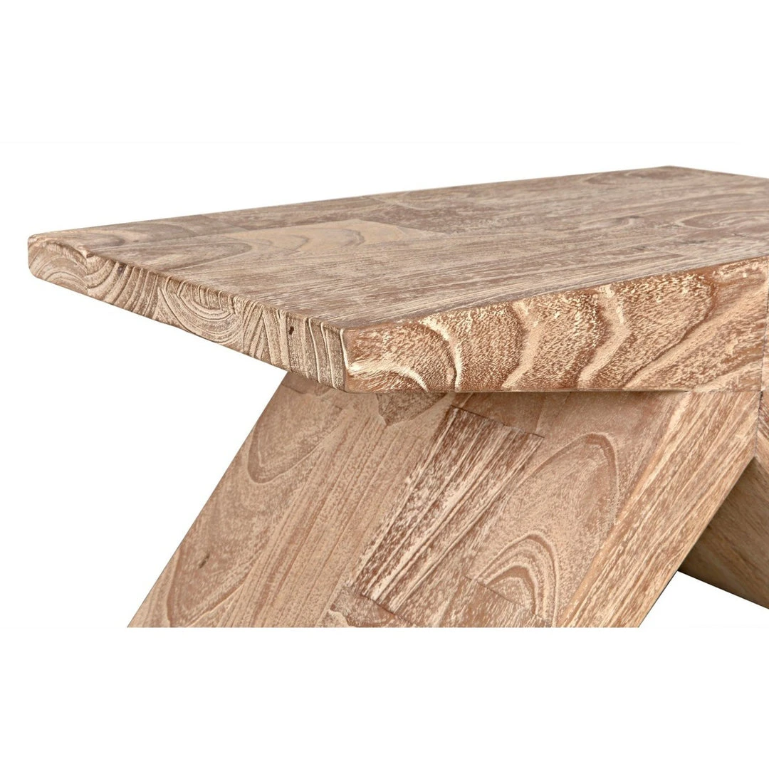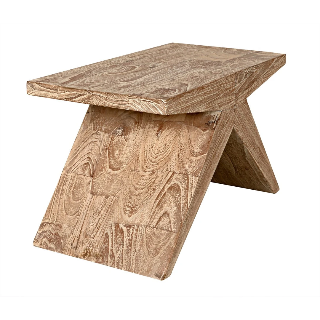 The Anais Stool from Noir features subtly tapering planes that suggest tropical modernity from the mid-century. This unique piece is crafted from distressed Mindi wood with a ceruse effect finish that highlights the grain. Place this accent piece in bedrooms, entryways, and living spaces for a touch of rustic chic.