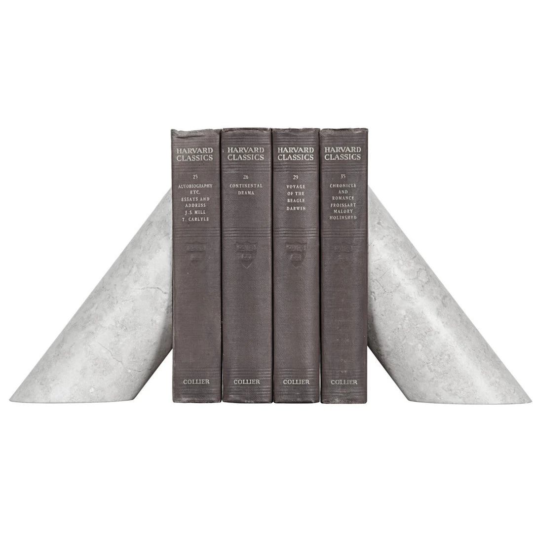 The Architectural Objects Bookends from Noir features sleek white marble and a modern shape. This striking set is a bookshelf must-have. Place this set on your shelving or tabletops in the office, entryway, or living area and organize and display your books and magazines in style. *Coloring of marble will vary on each piece.