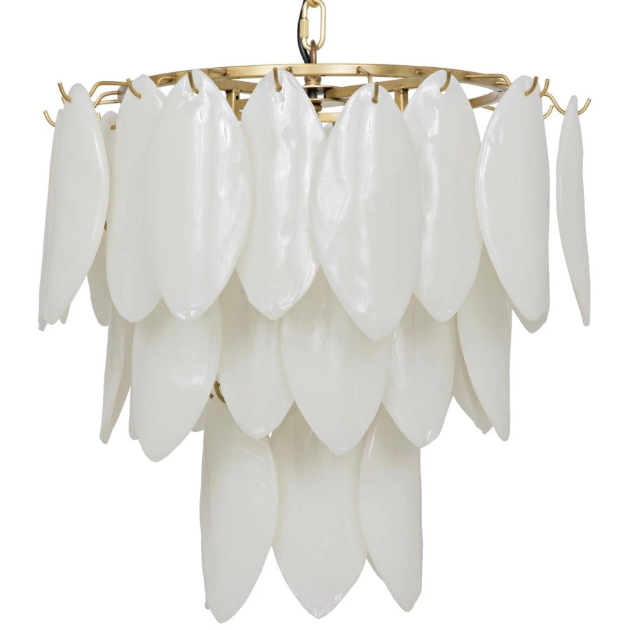The Lotus Chandelier from Noir delivers brilliant illumination to any room of your home. The glass and metal chandelier feature an antique brass finish and a striking silhouette perfect for a variety of decor schemes from contemporary to traditional. Place this dramatic hanging light in multiples in the entryway, hallway or in over the dining room table.