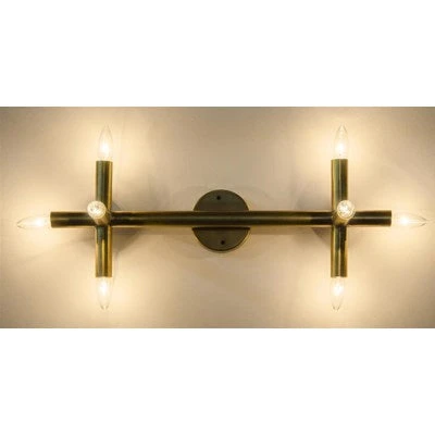 The Noir Salome Sconce in Antique Brass features a two arm design with eight lights and a contemporary vibe. Delivering an understated elegance and a warm glow, the Salome offers dramatic wall sconce lighting choice for the entryway, dining room or home office.